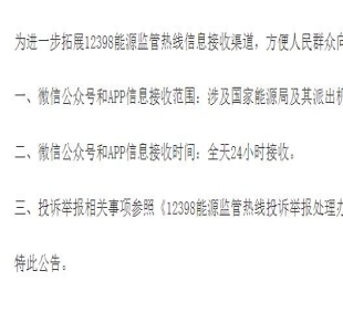 为进一步拓展12398能源监管热线信息接收渠道,方便人民...[详细]